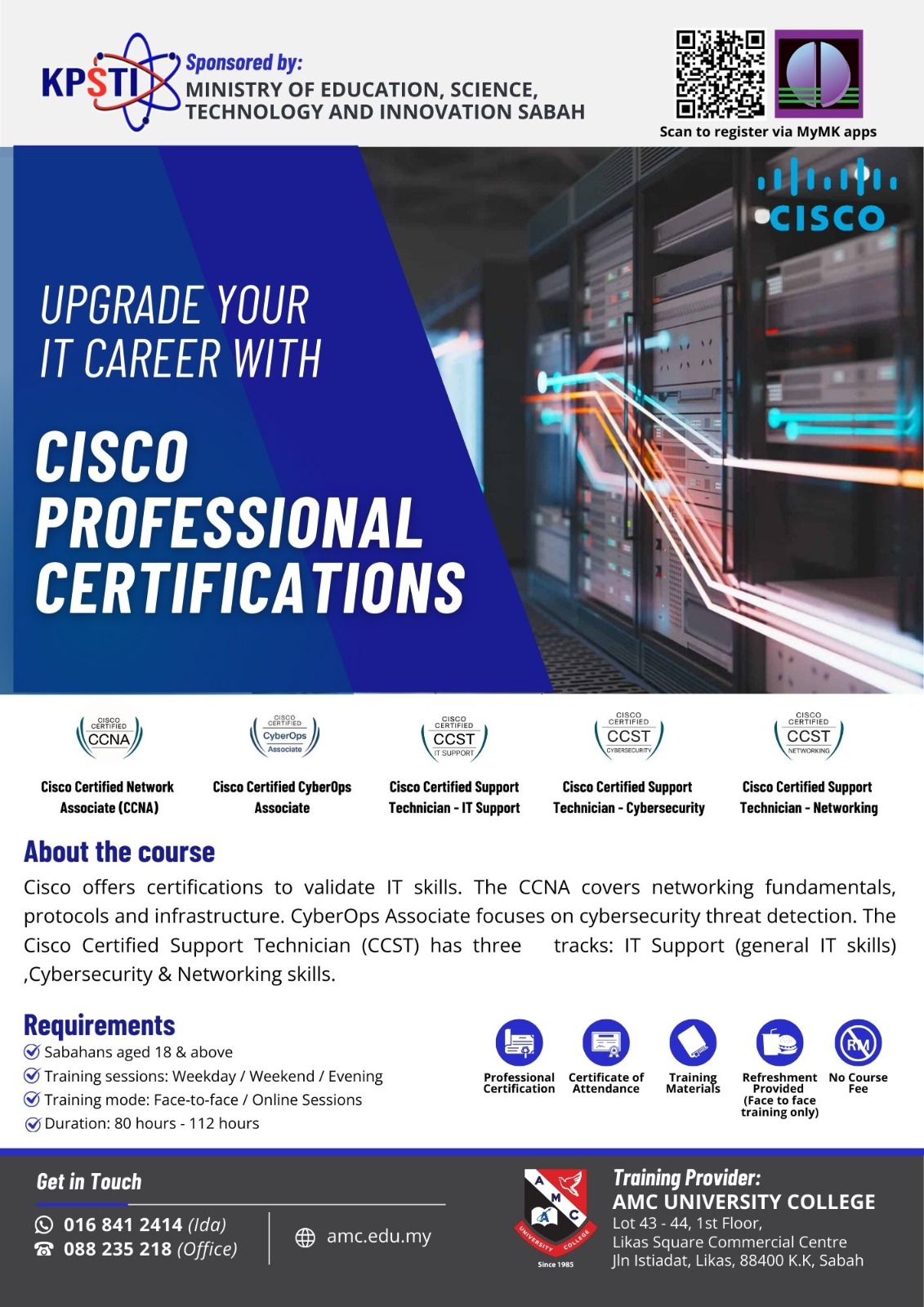Cisco Certified Support Technician – Networking: Introduces network setup, troubleshooting, and wireless basics. Suitable for those pursuing entry-level networking jobs or progressing to CCNA.