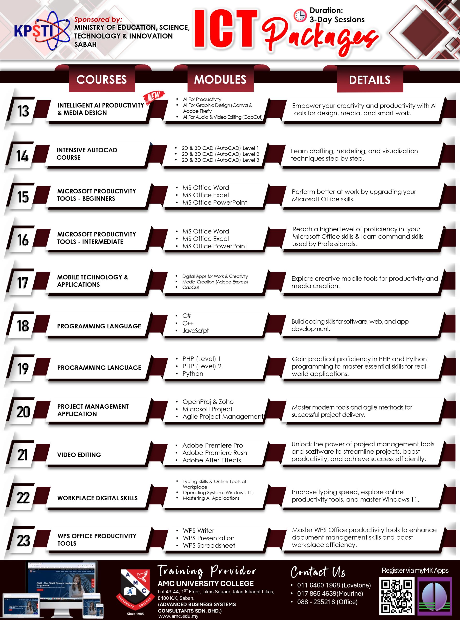 Click here to view the latest ICT courses schedule