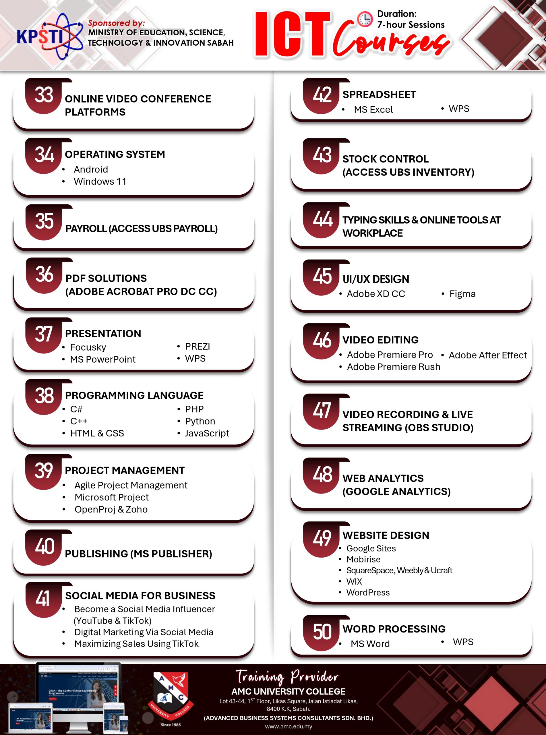 Click here to view the latest ICT courses schedule