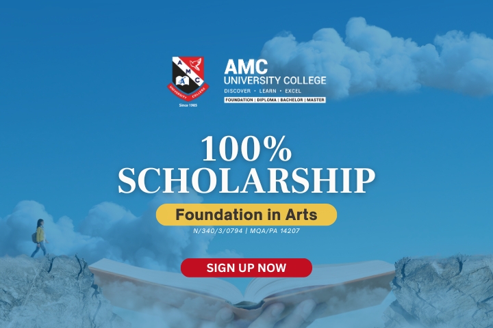 AMC University College is offering a 100% tuition fee scholarship for the Foundation in Arts programme under the GRADS-UP Package, a structured academic pathway designed for students who plan to continue their studies into selected Bachelor’s Degree programmes at AMC.